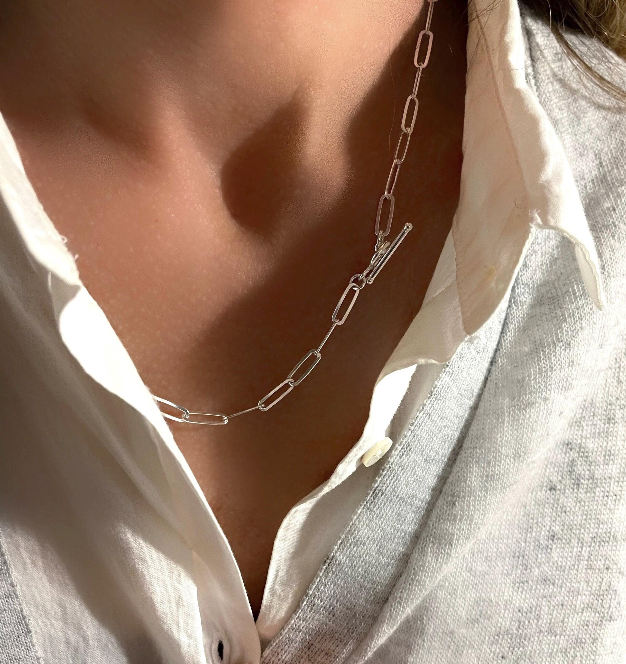 Paperclip Toggle Necklace in solid 925 sterling silver or thick premium quality sterling silver plate