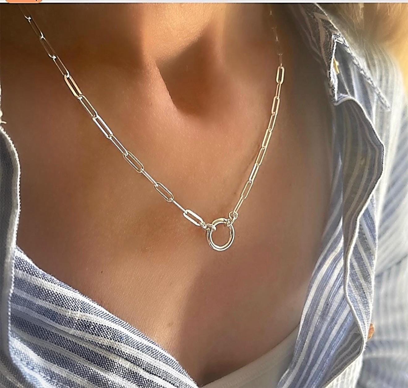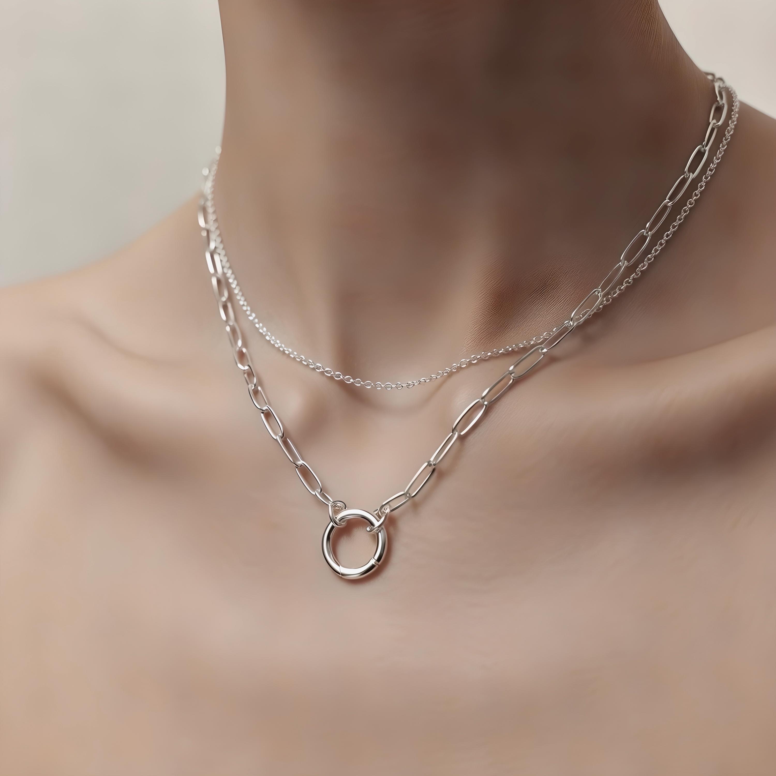 Solid 925 Silver Charm Clasp Paperclip Necklace - add your own pendants and charms as you like.