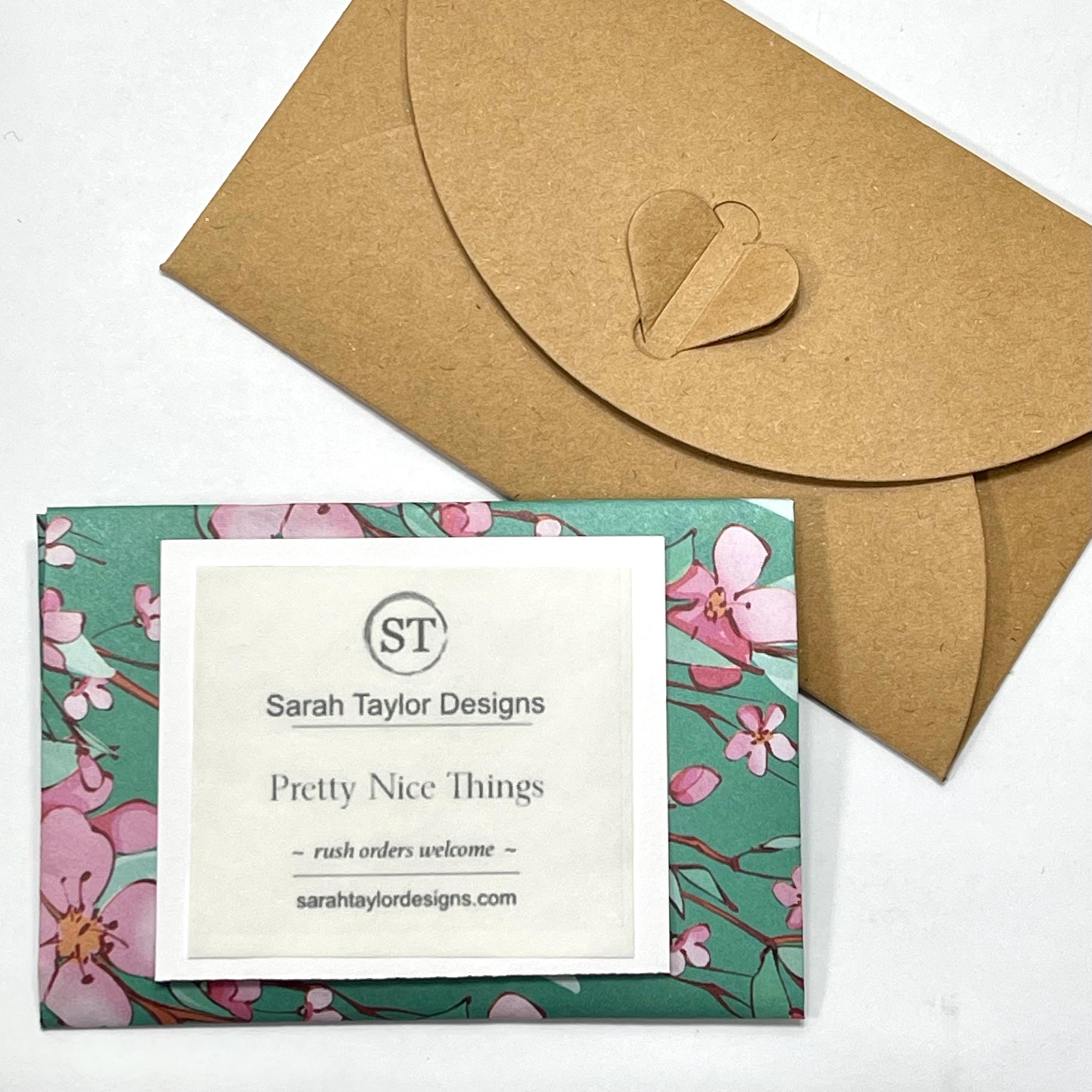 - necklaces and bracelets are packaging in colourful paper and a small gift envelope