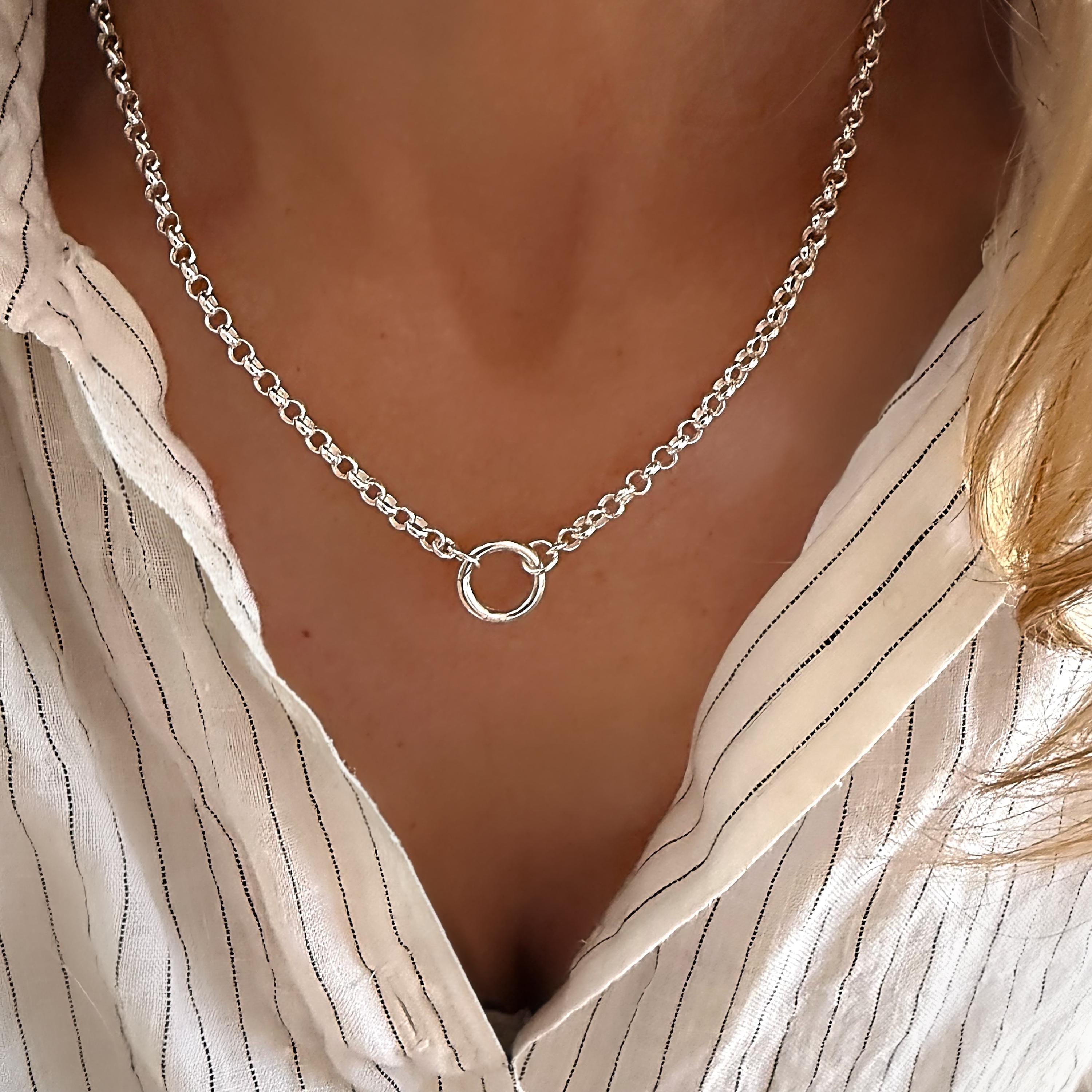 925 Silver Rolo Chain with charm stacker clasp.