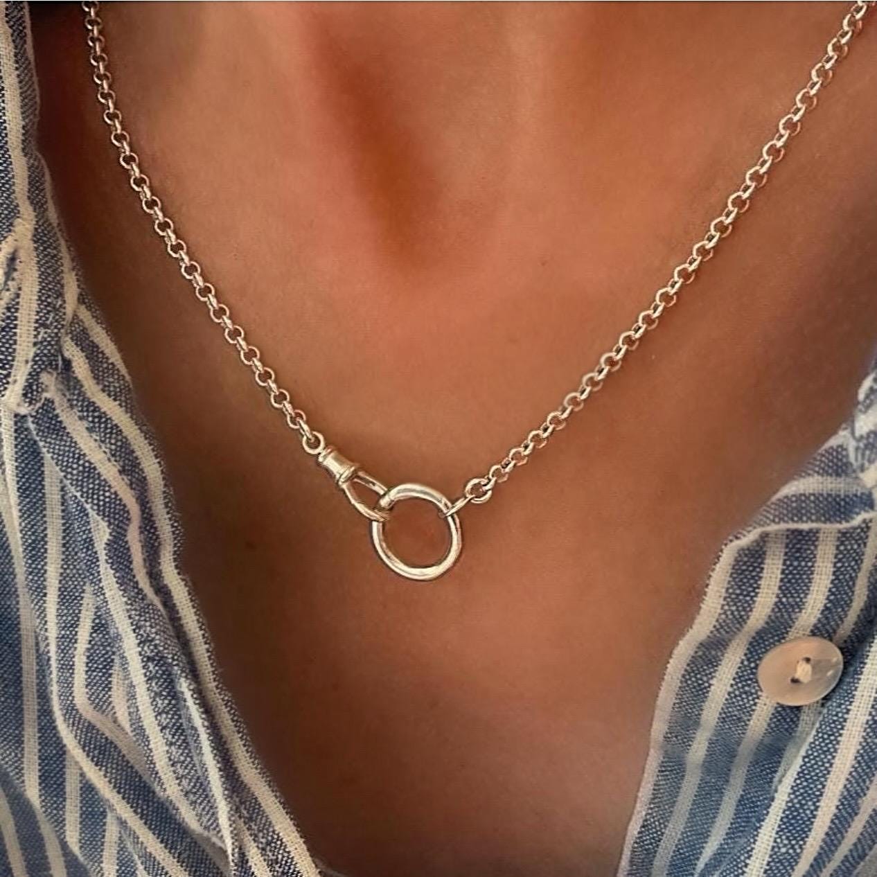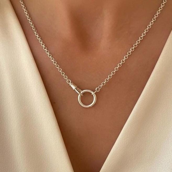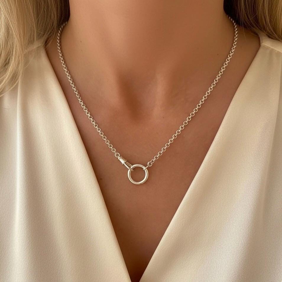 Two charm clasps are the focal point of this rolo chain necklace , add pendants and charms as you like.