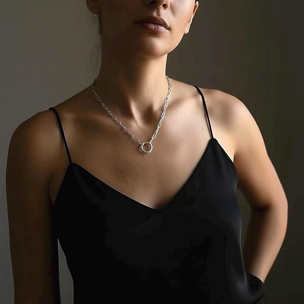 A classic paperclip chain features a removable extension and a removable extension.