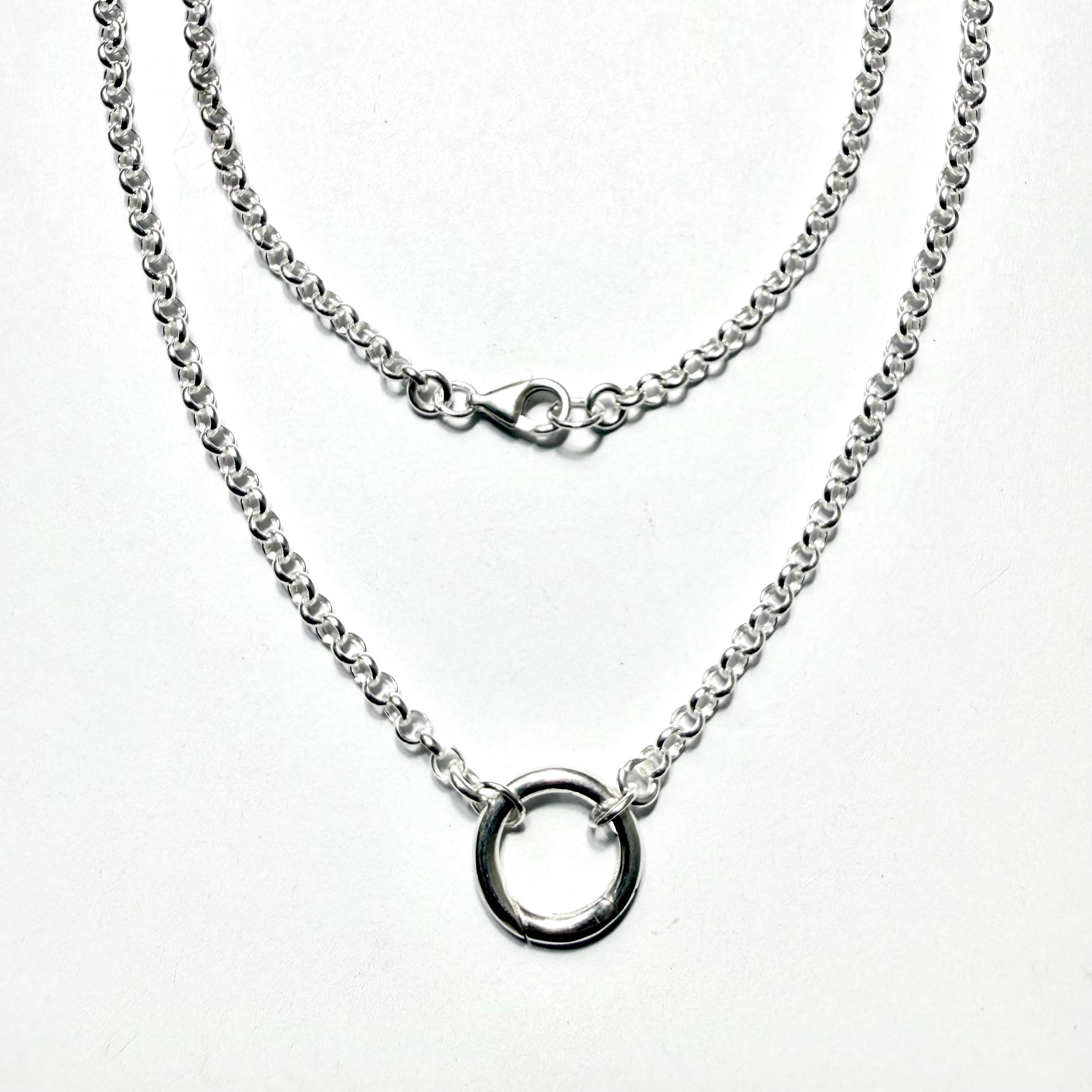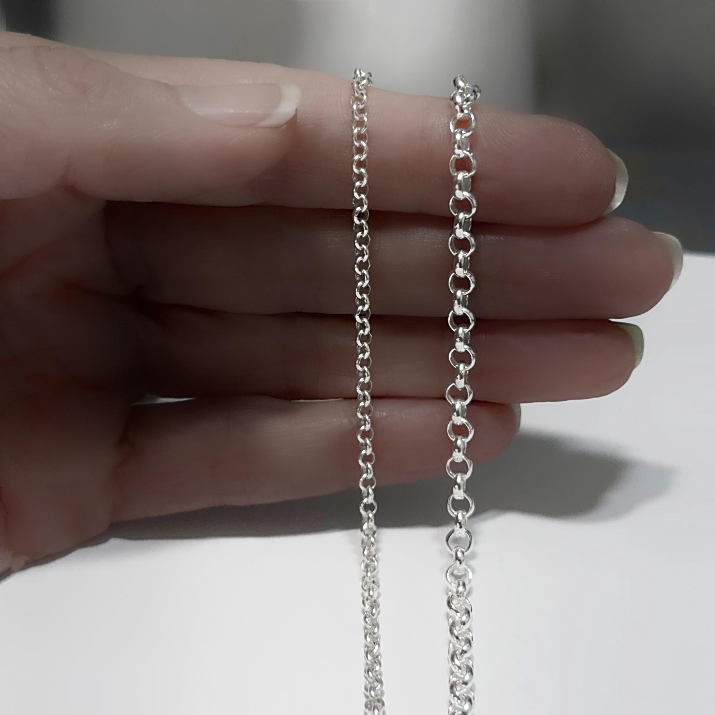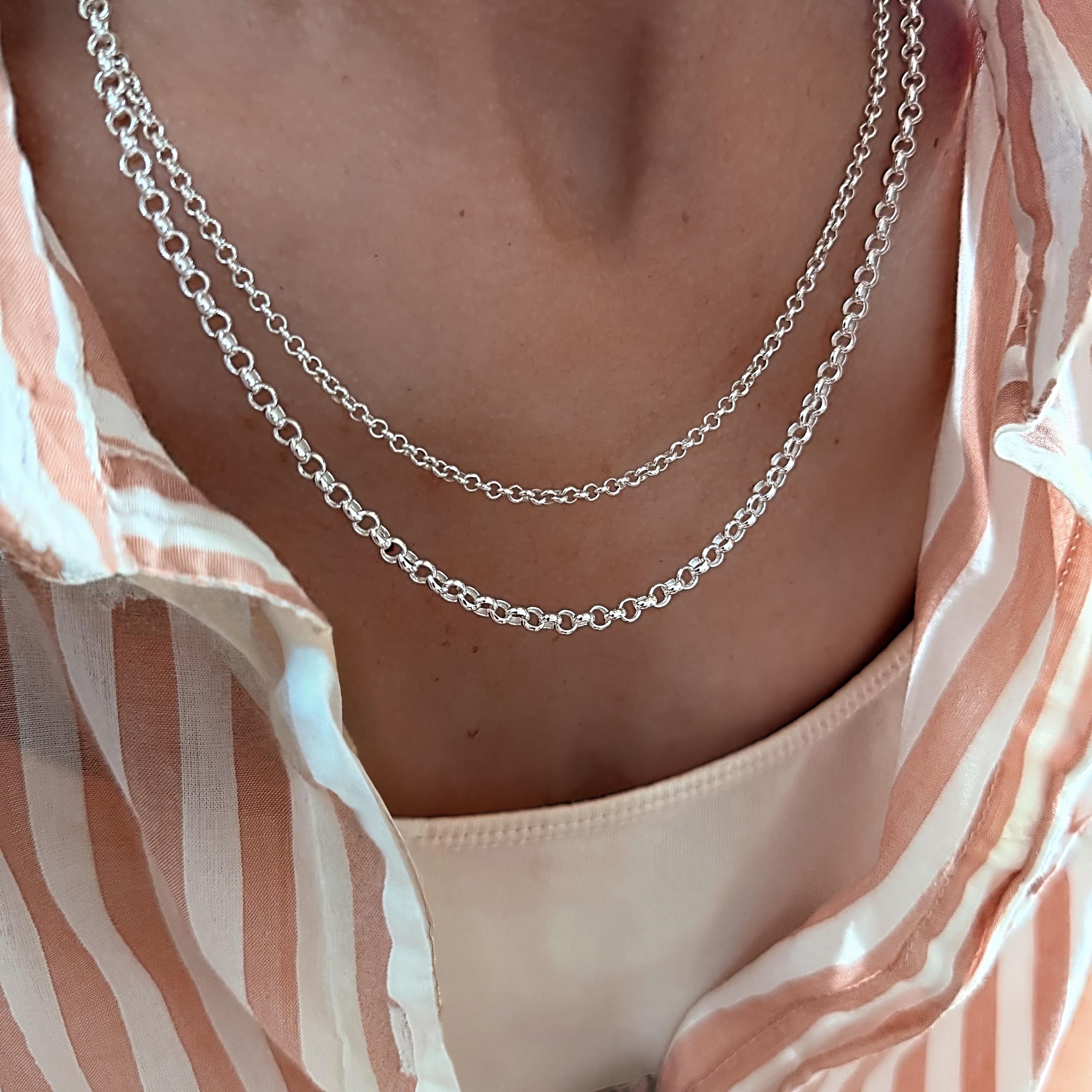 This solid Sterling Rolo necklace has two clasps with a variety of styling options.
