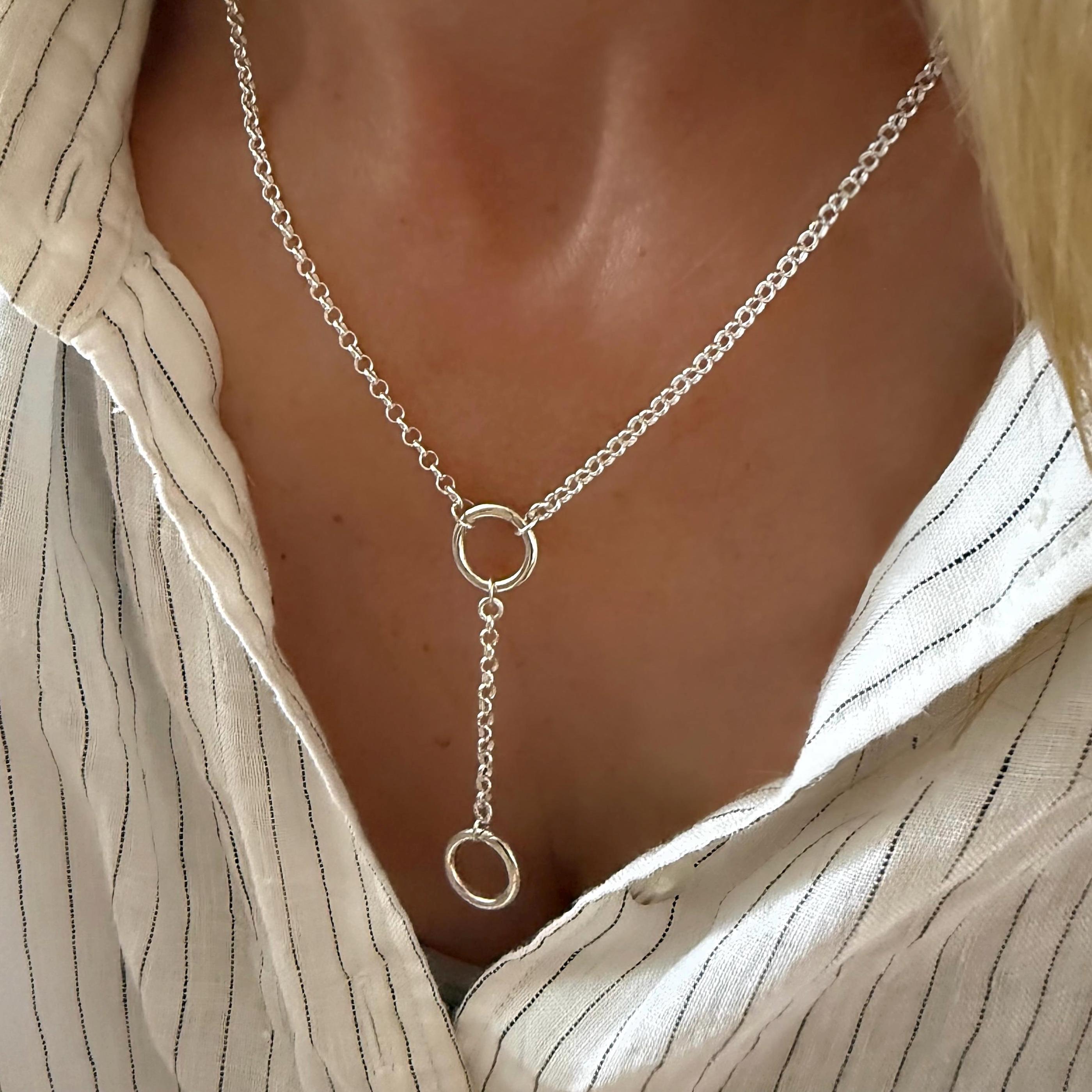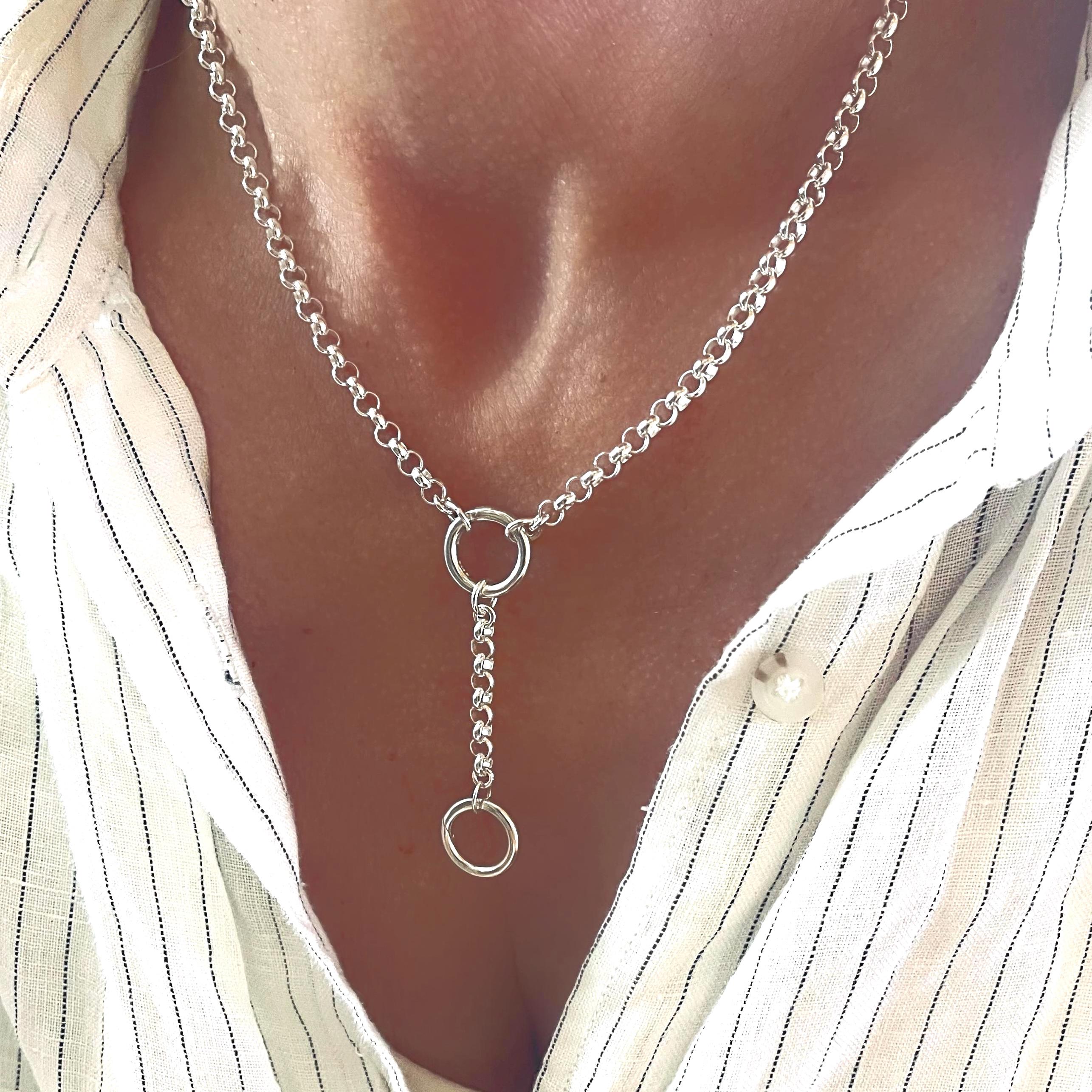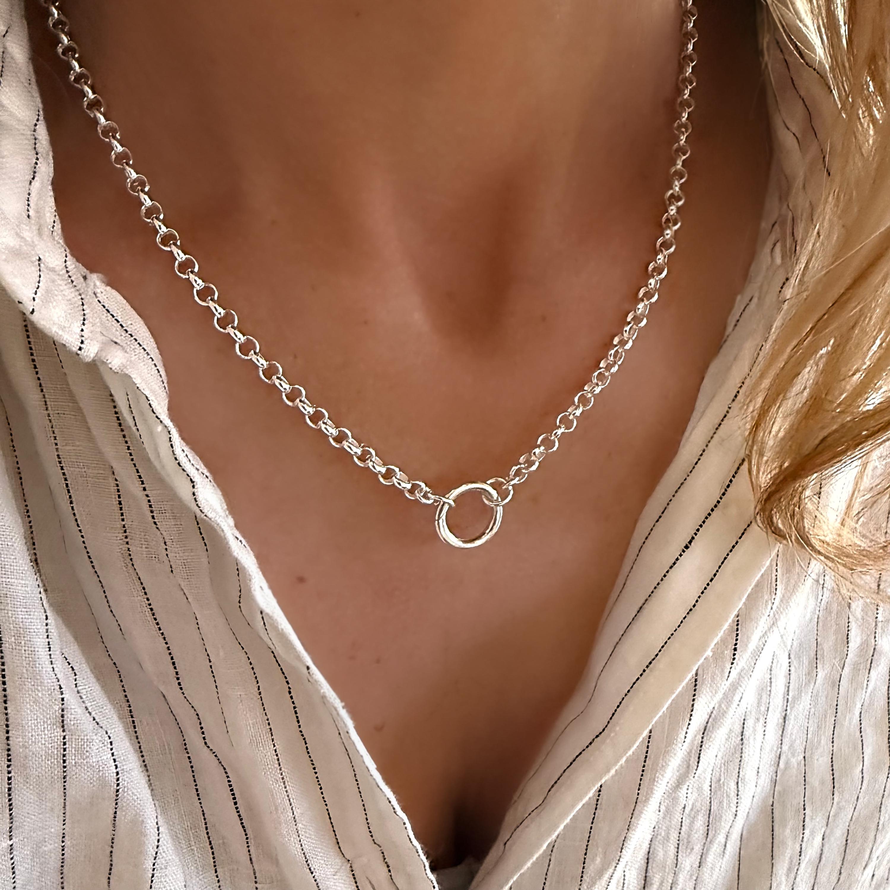 This solid Sterling Rolo necklace has two clasps with a variety of styling options.