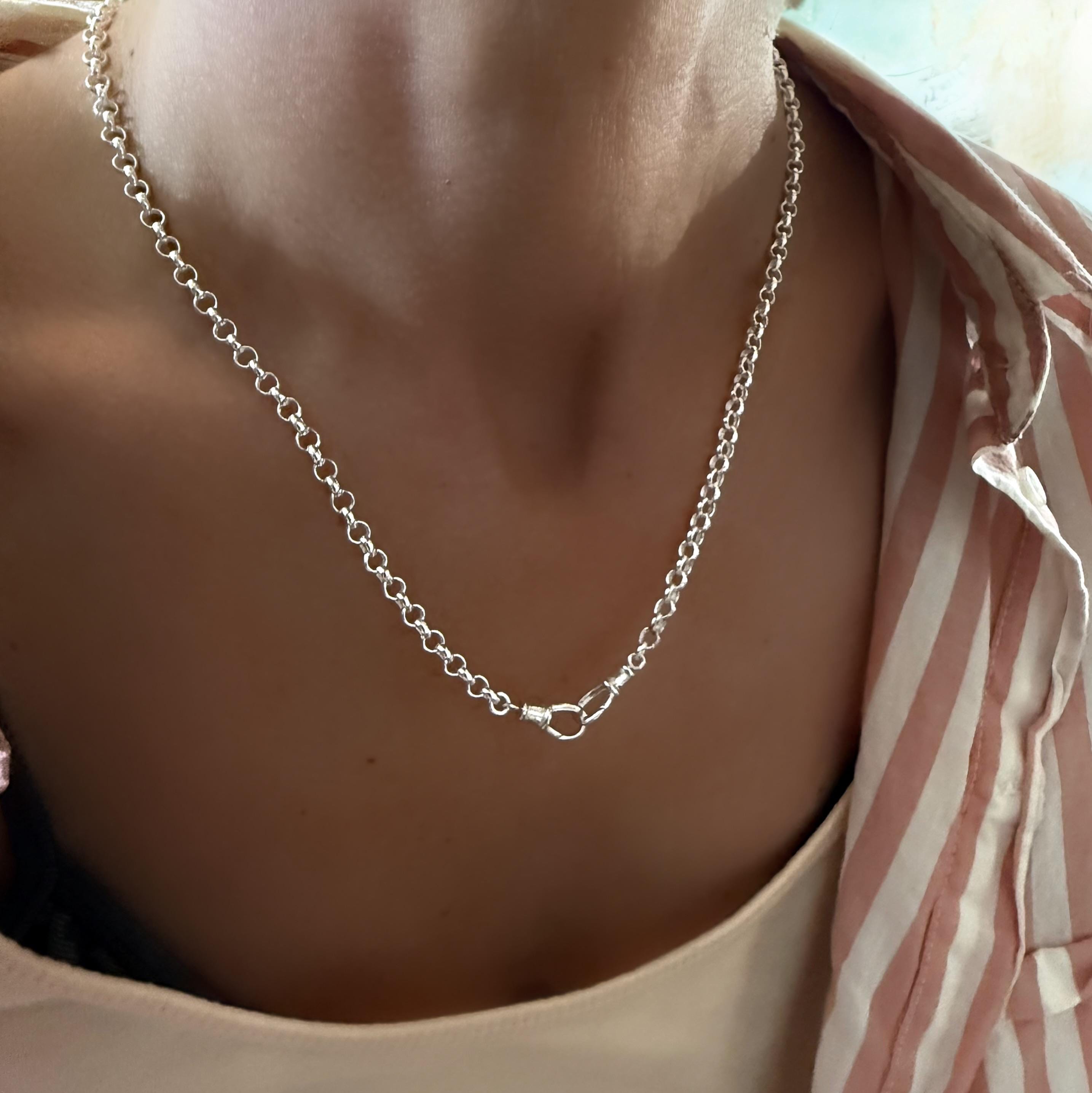 A sterling silver rolo chain with double swivel clasps for versatile styling - wear alone as a statement piece or attach you favorite charms or pendants for a personalized look.