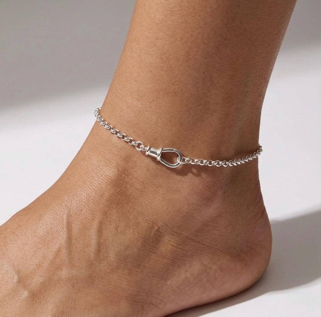 A swivel clasp secures this solid sterling silver rolo chain bracelet.