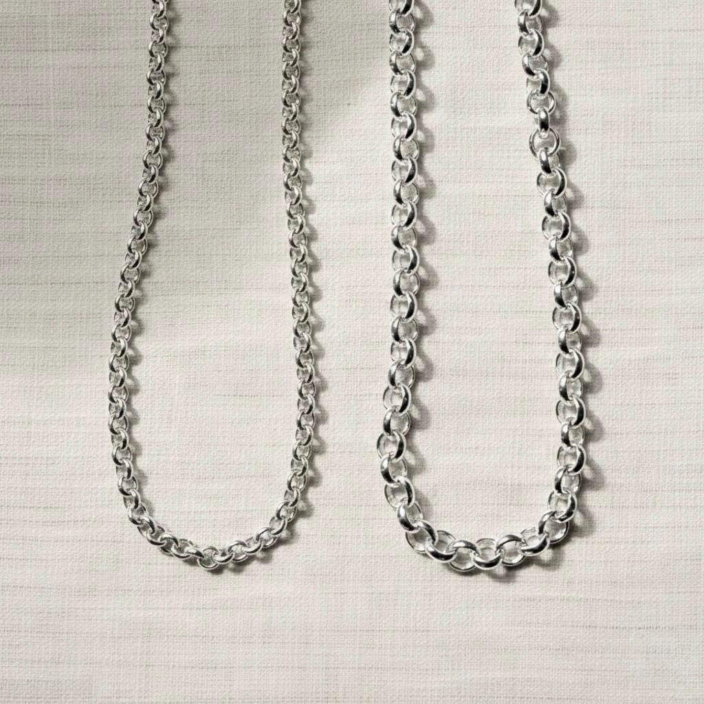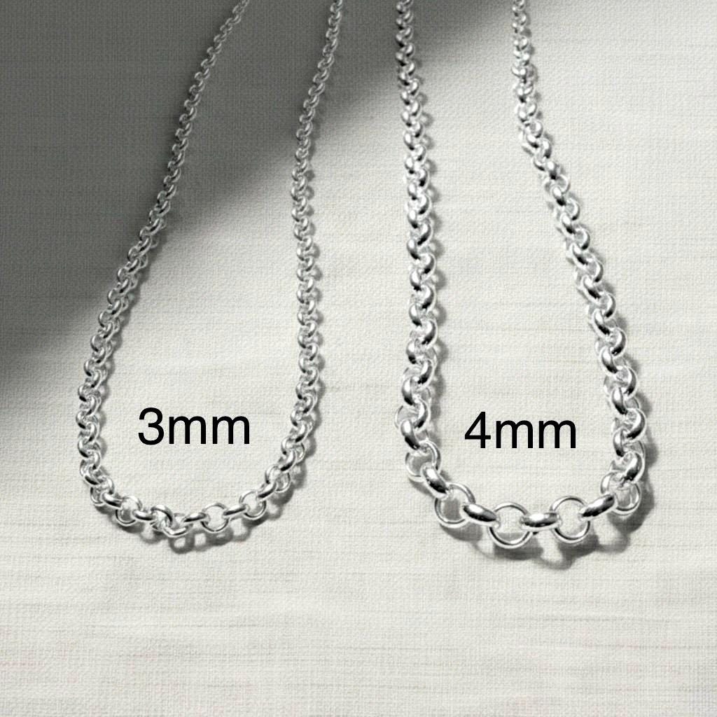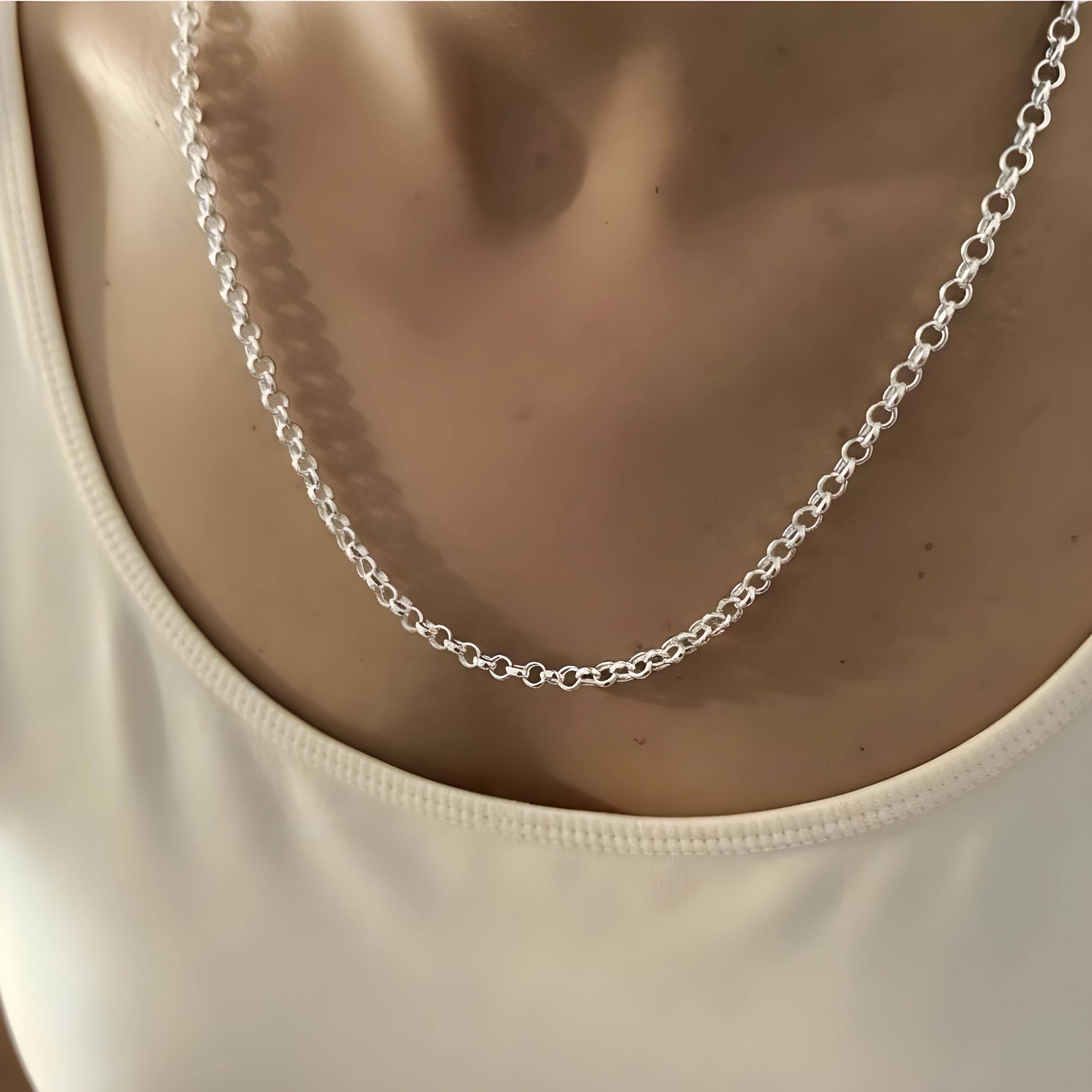Classic sterling silver Rolo chain necklace finished with a strong lobster clasp.