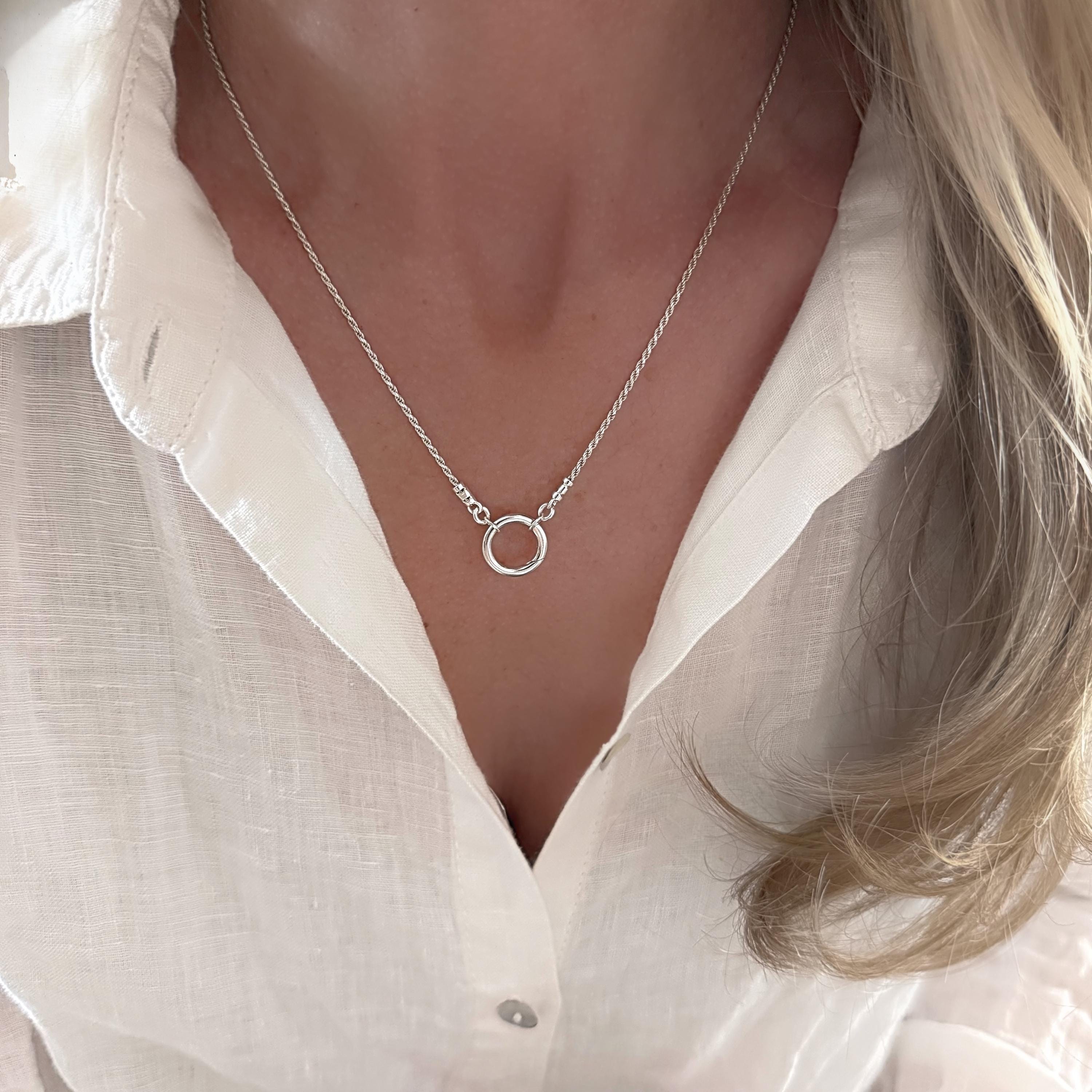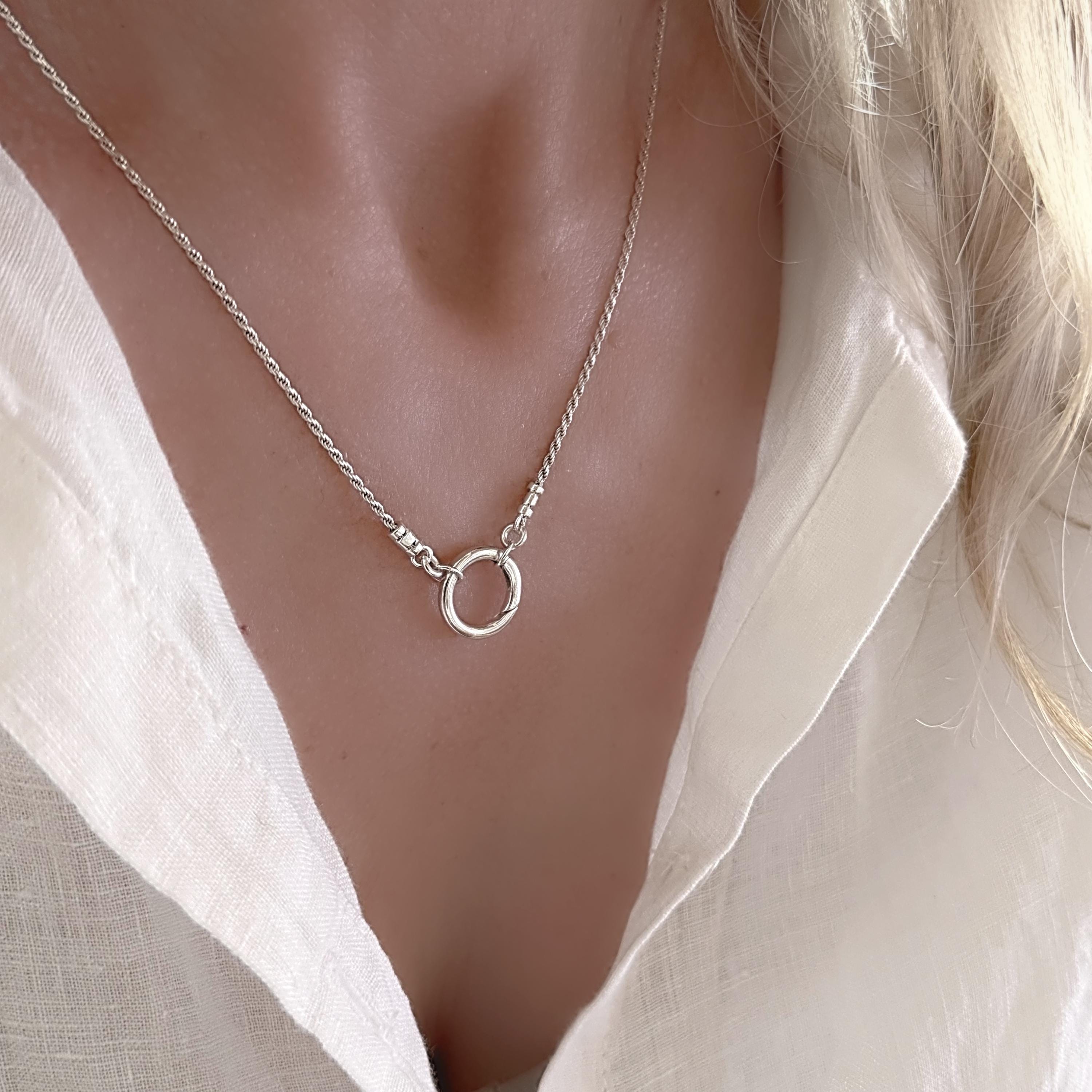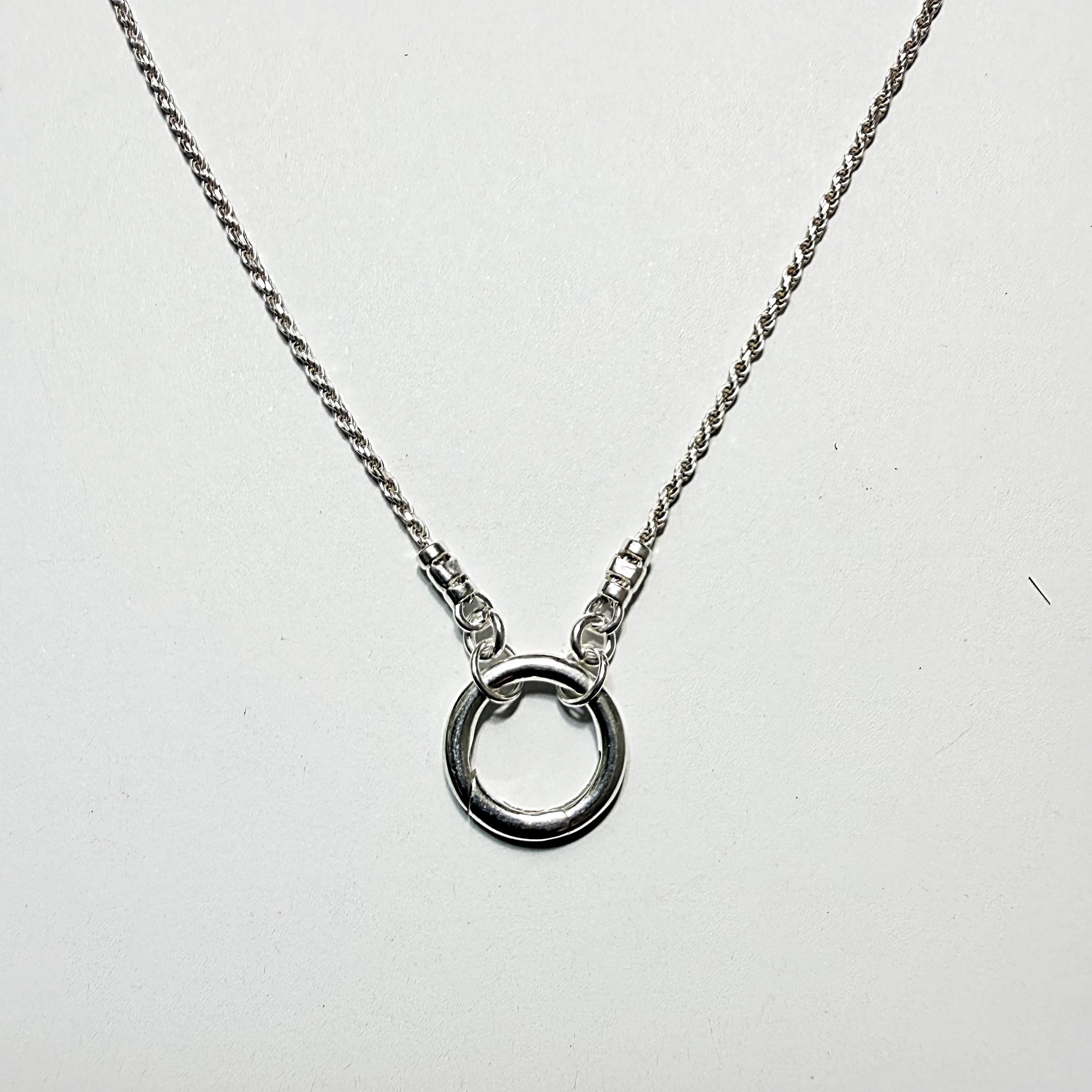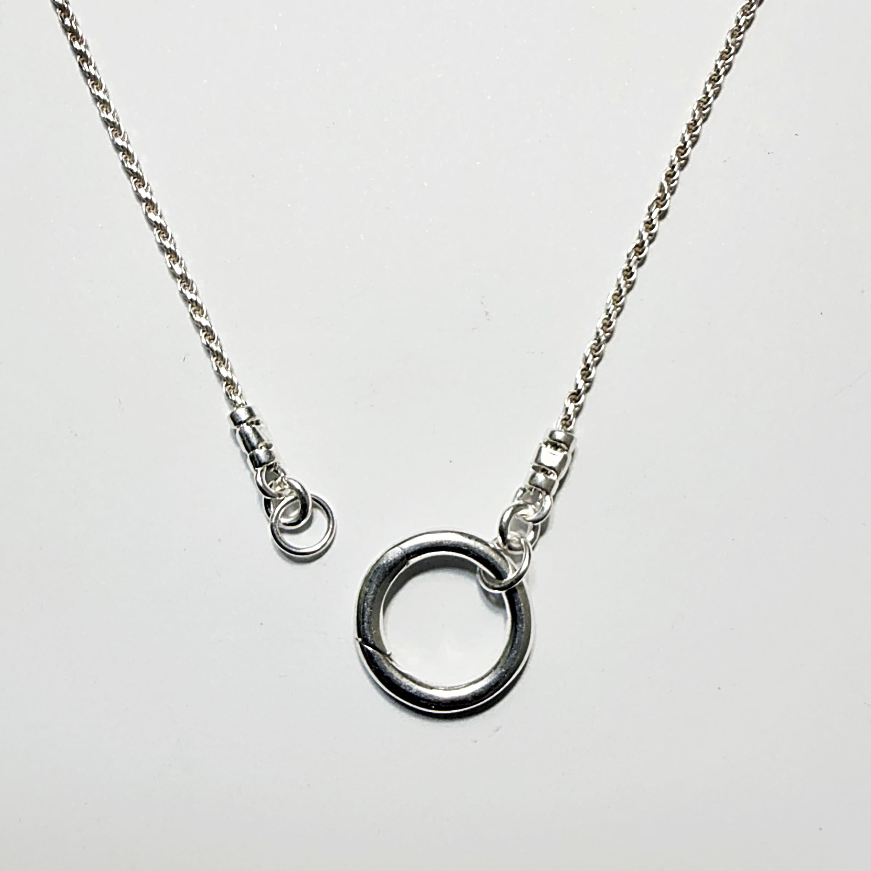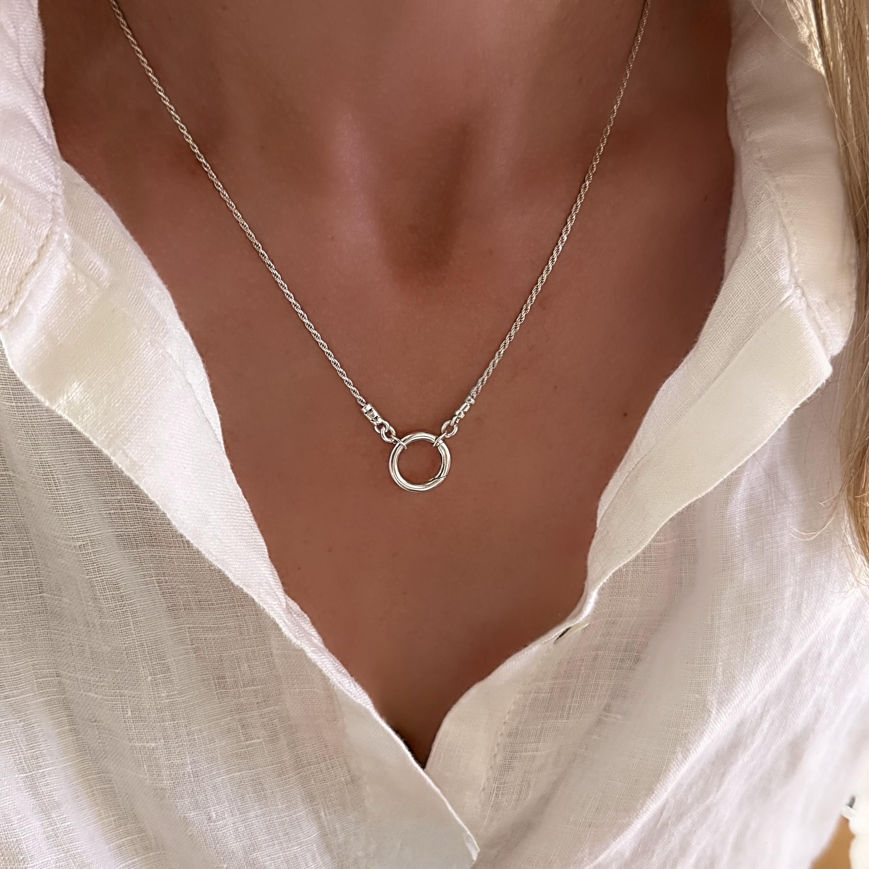 This diamond cut rope chain features a front circle charm clasp to add your own charms.