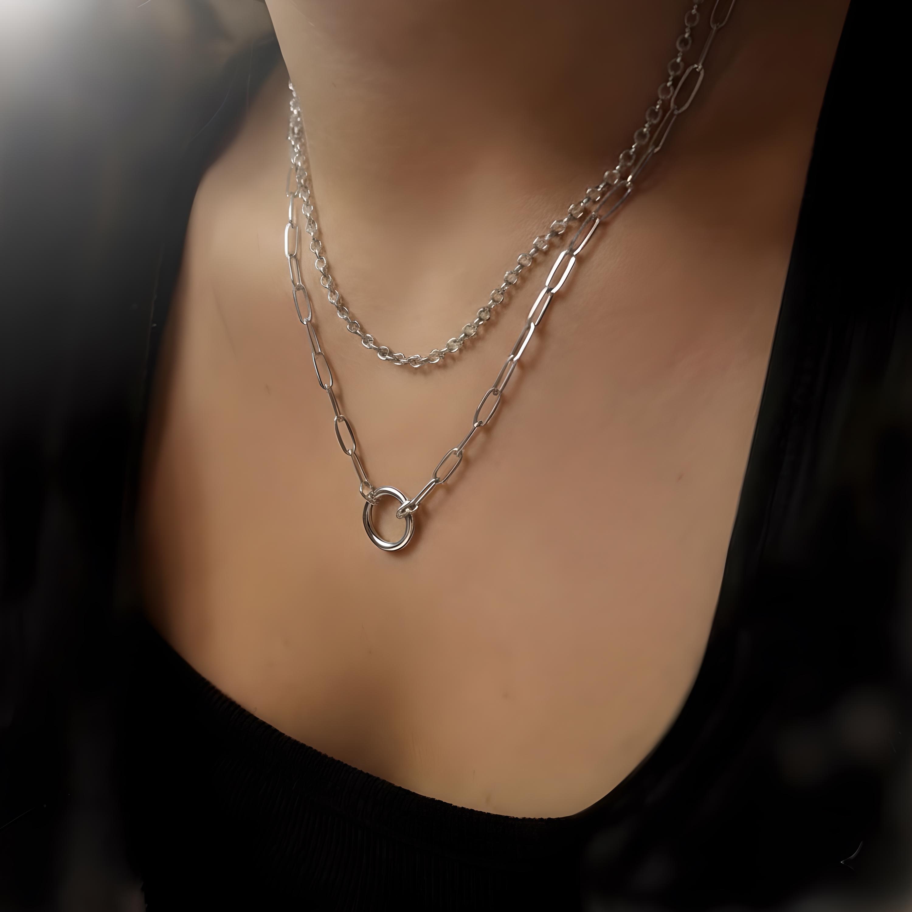 A front charm clasp is the focal point of this classic paperclip necklace - add charms and pendants as you like.