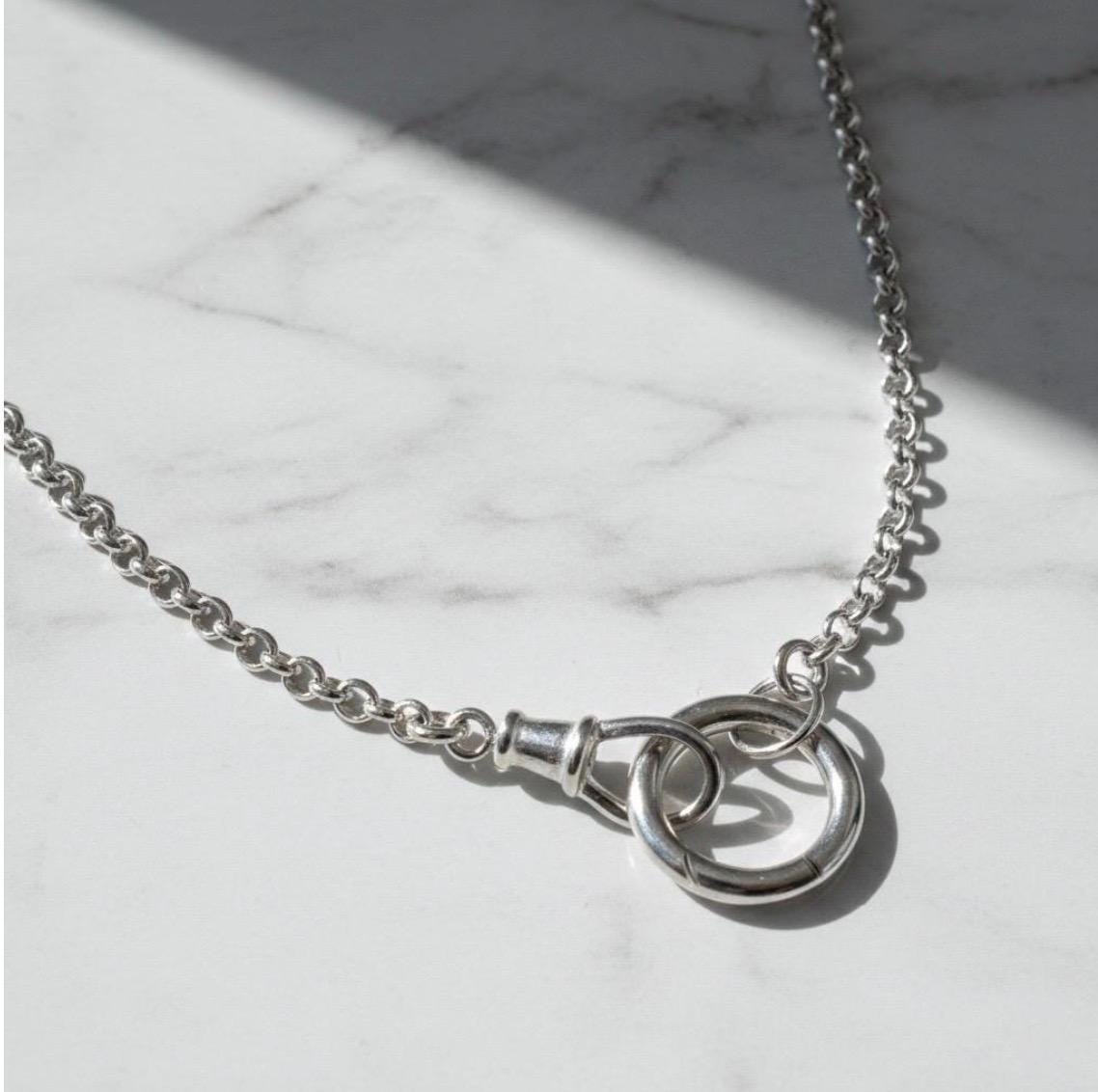 A classic Rolo chain finished with 2 charm clasps - a swivel watch clasp and a round carabiner.