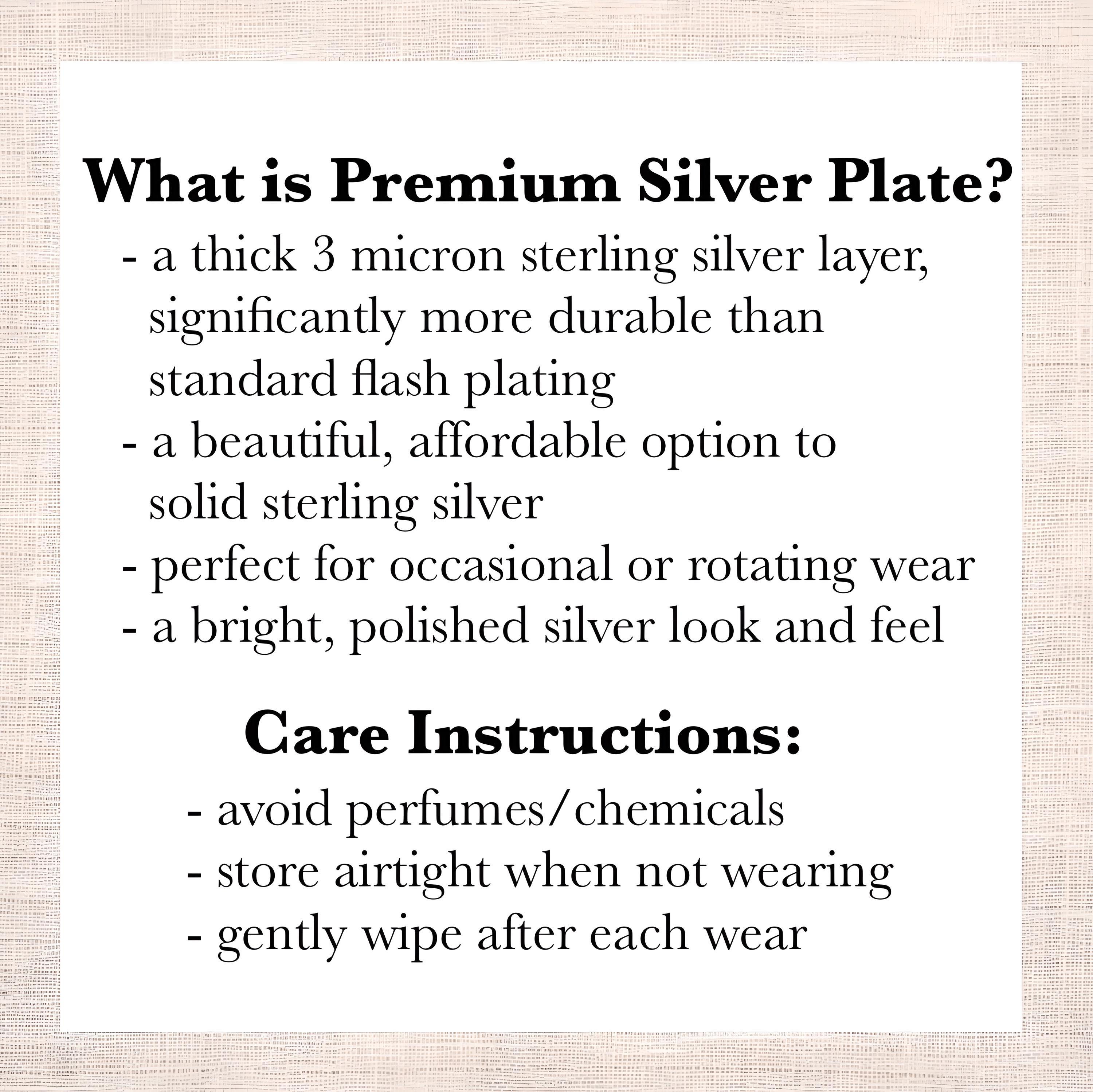 - Ours is a premium heavy plate, ie not flash plating as with most fast-fashion jewelry.