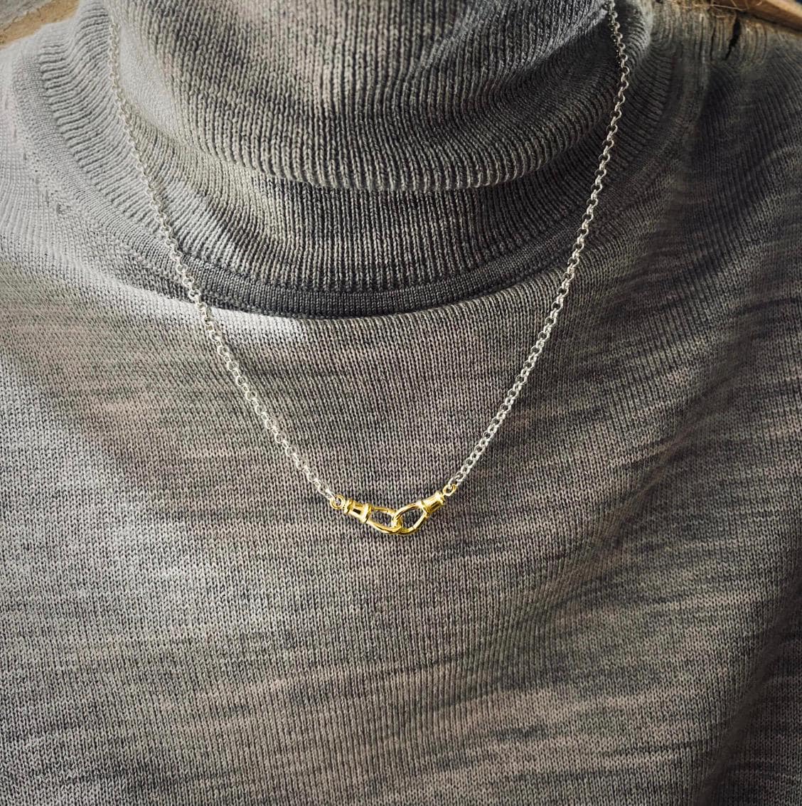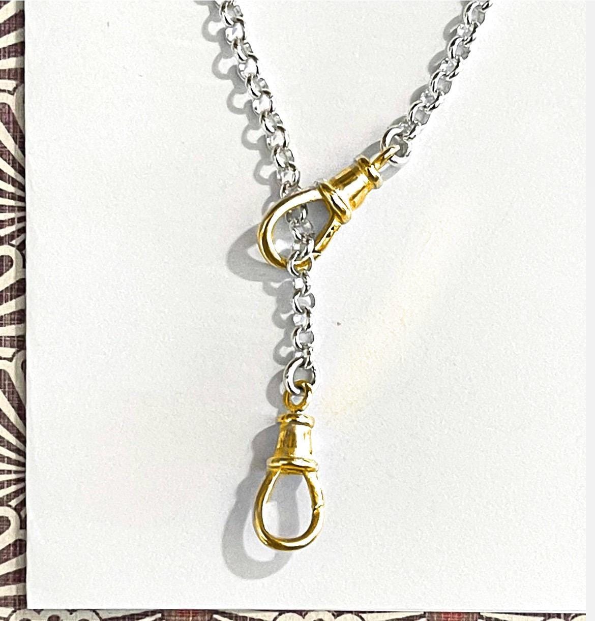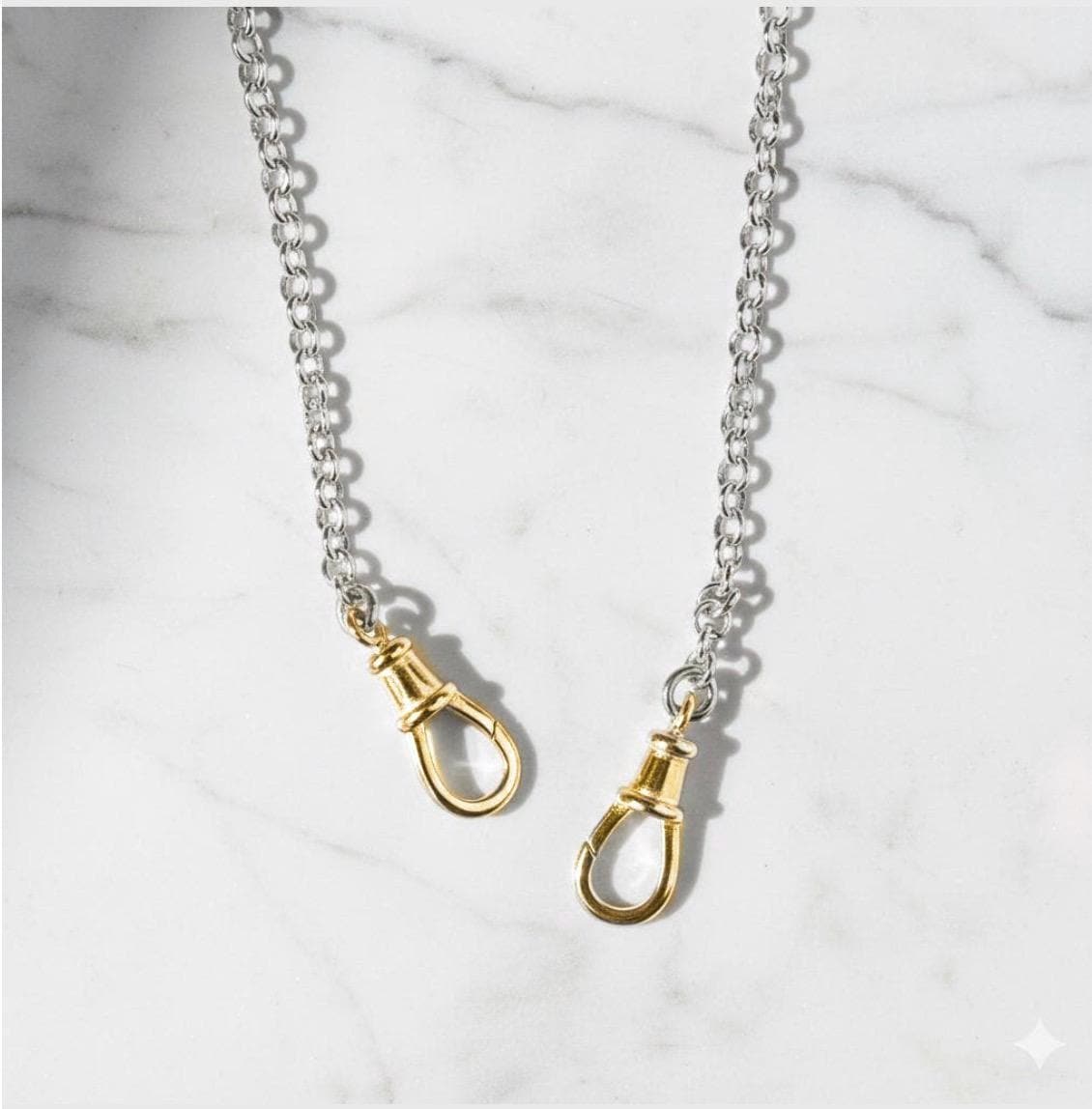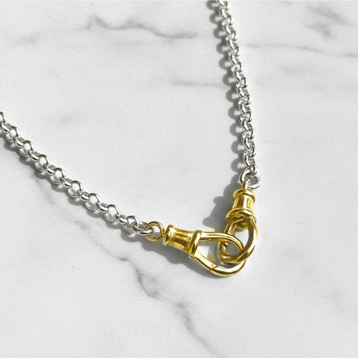 A classic silver Rolo chain featuring two gold swivel “watch” clasps - add pendants and charms as you like.