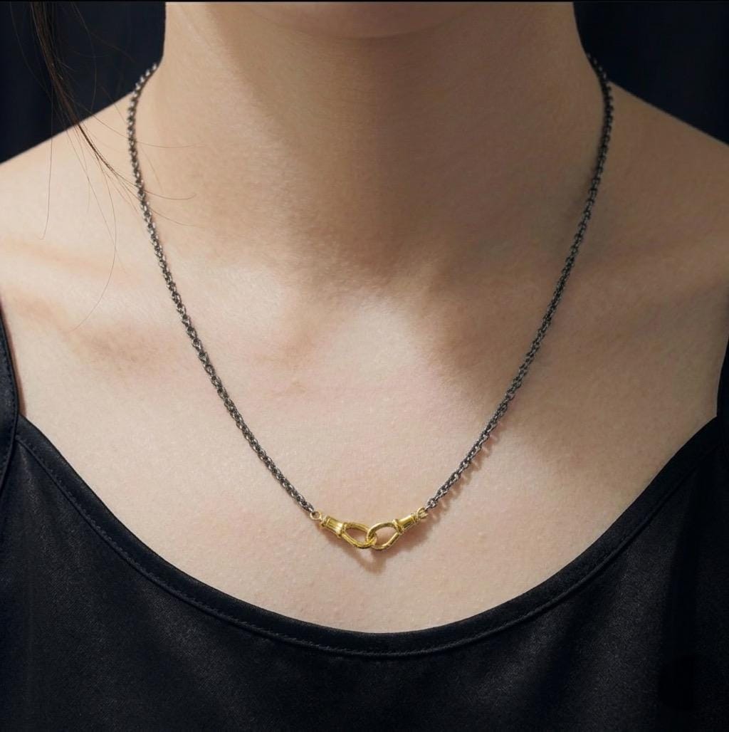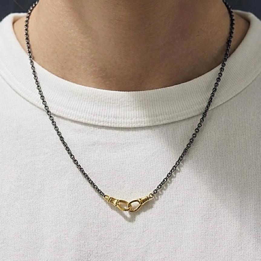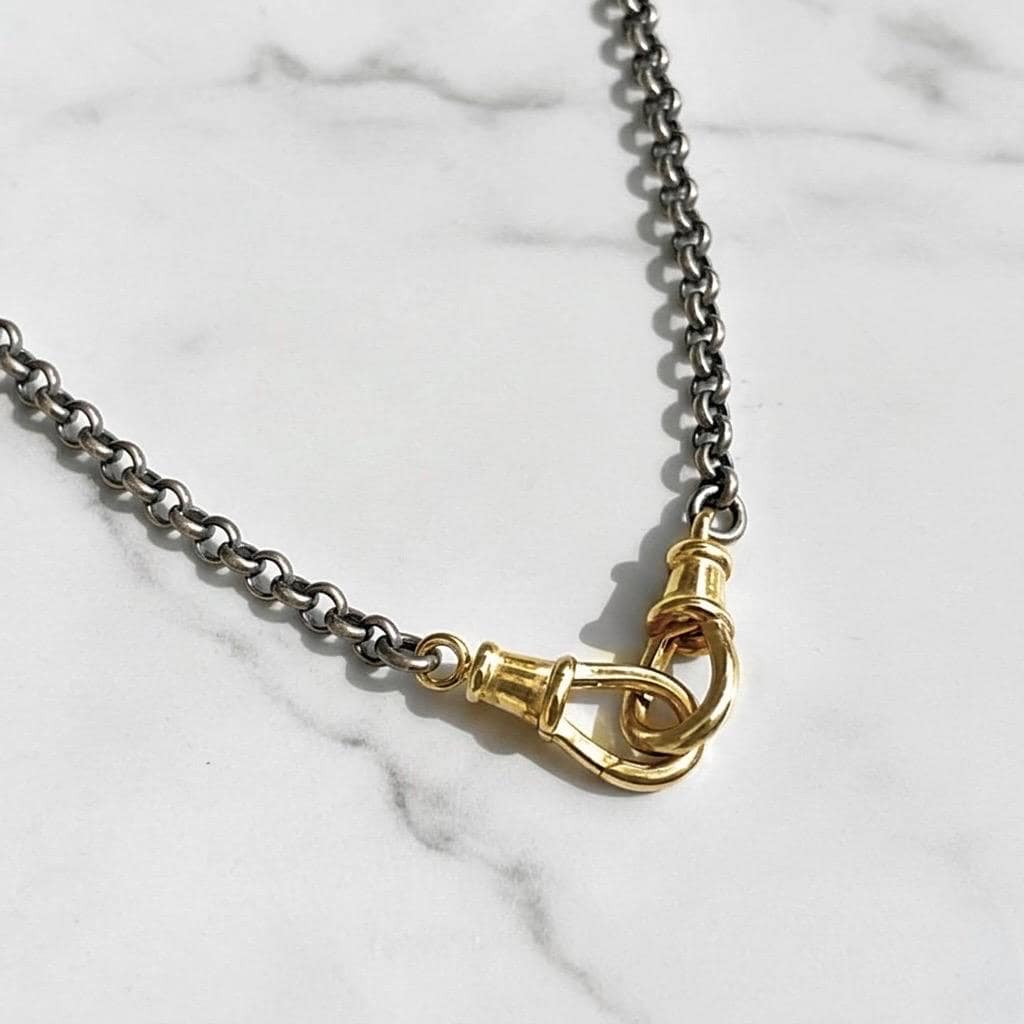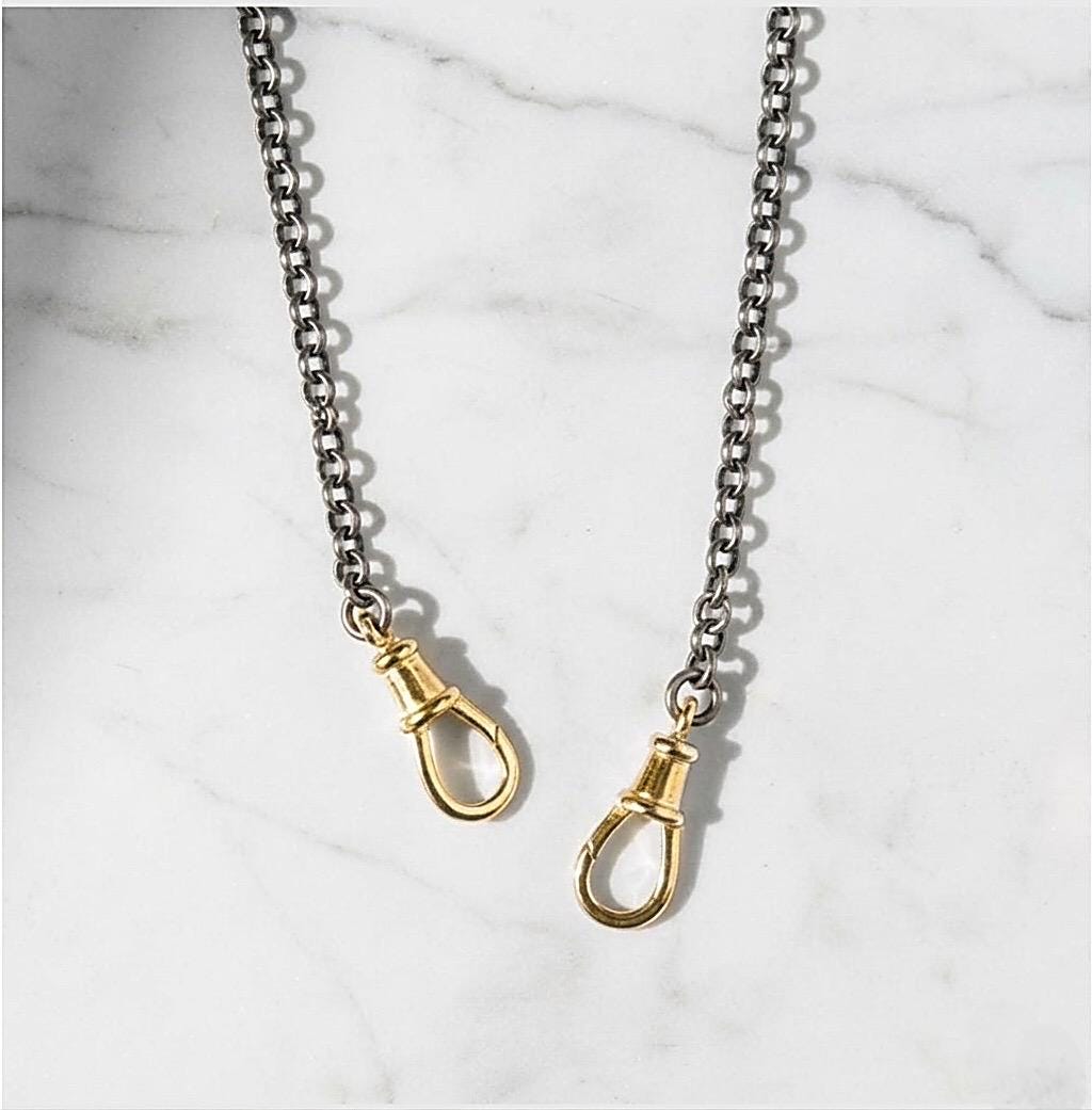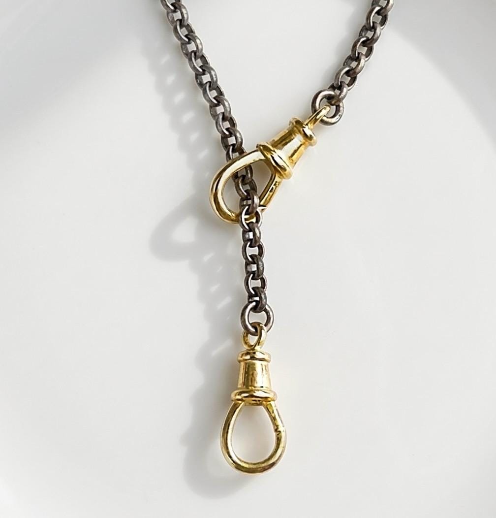 An antiqued Rolo chain with 2 gold swivel “watch” clasps - add pendants and charms as you like.