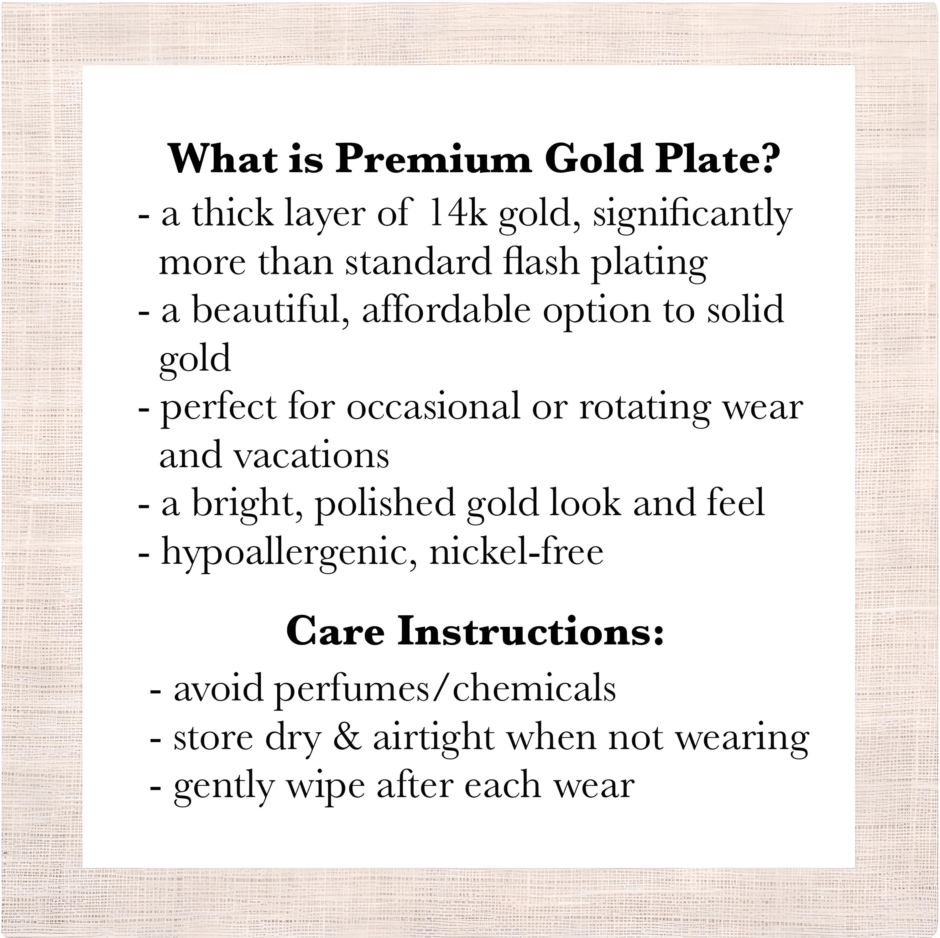 - Ours is a premium heavy plate, ie not flash plating as with most fast-fashion jewelry.