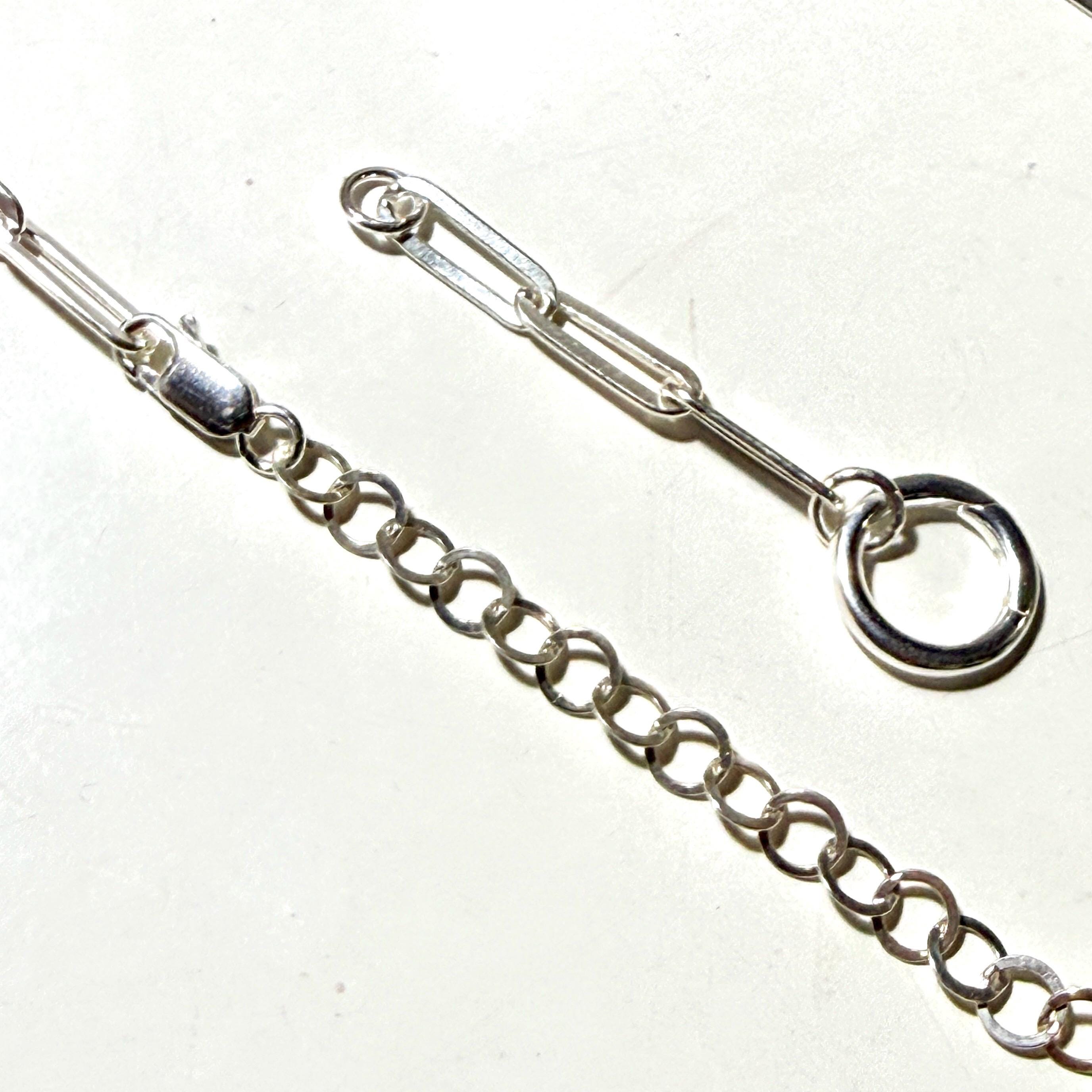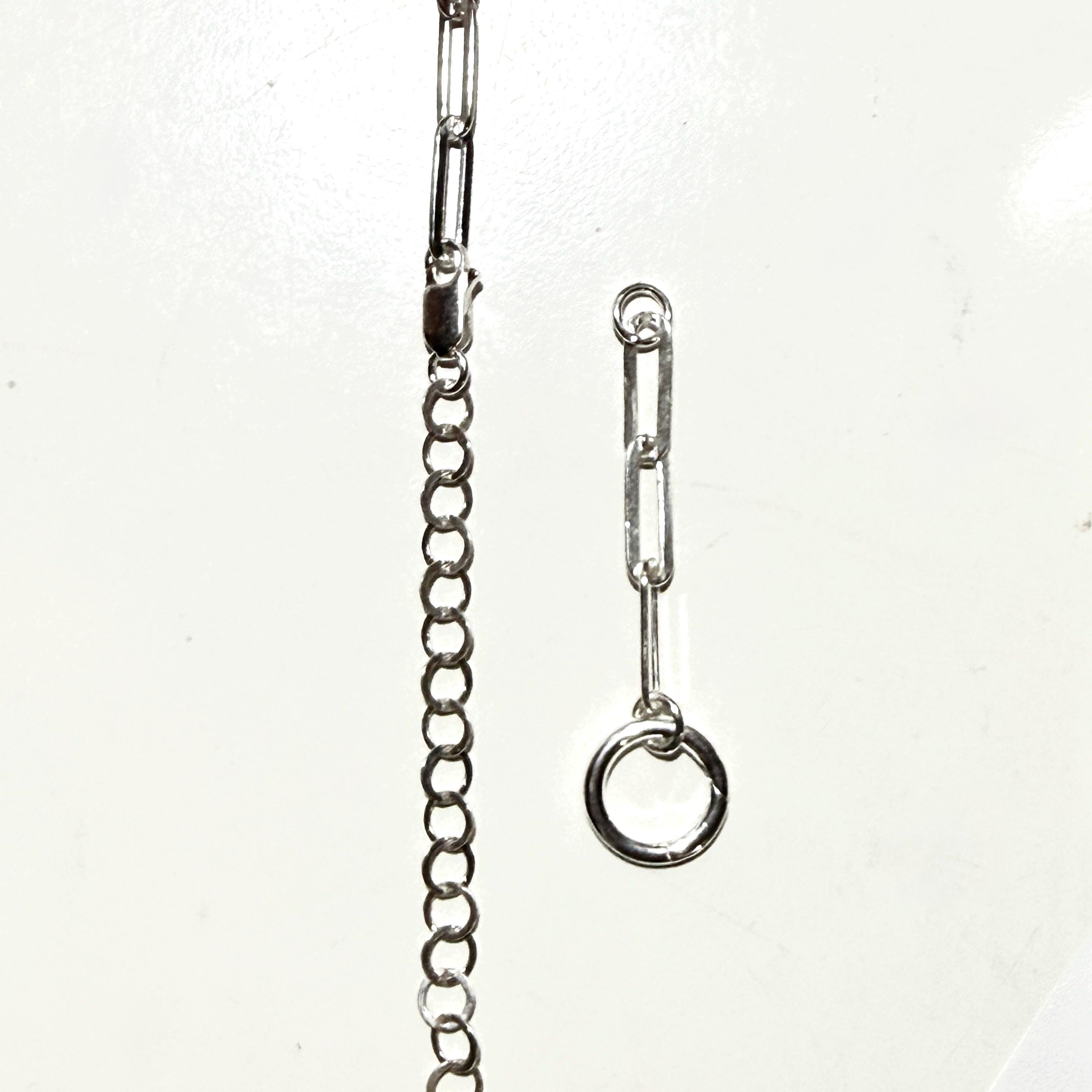 1) Attachable sterling silver paperclip chain extension with charm clasp.